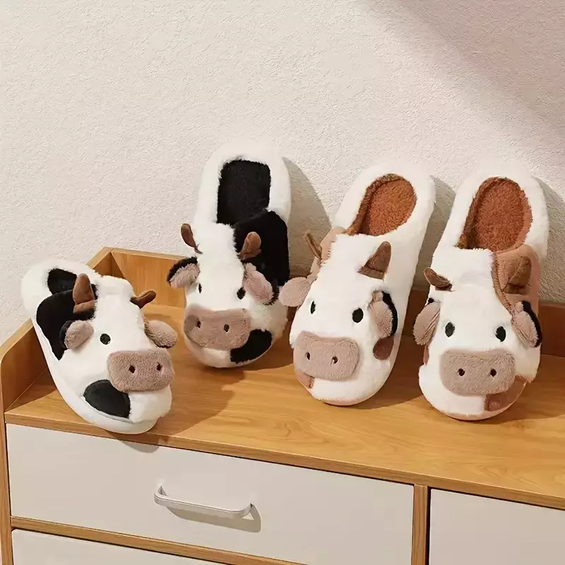 Pantuflas infantiles con diseño de vaca de peluche, suaves y cómodas, ideales para mantener los pies abrigados y con estilo. Su plataforma incorpora luces que se encienden al caminar, aportando un toque divertido que encantará a los niños. Perfectas para usar en casa durante todo el año.
